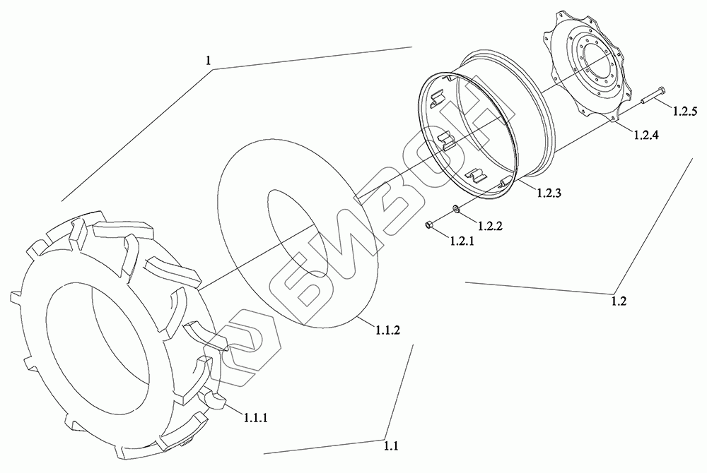 Графический каталог запасных частей к технике: LOVOL TM5D2A1304-001K. Заднее колесо