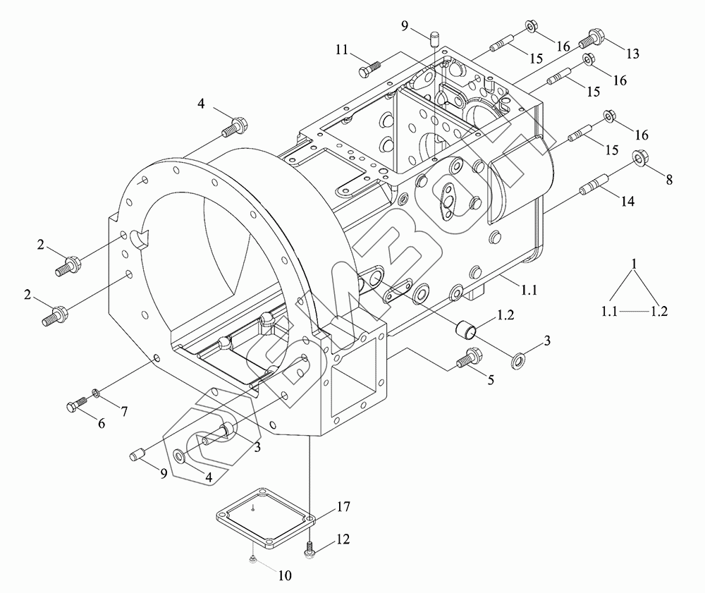 Графический каталог запасных частей к технике: LOVOL TM5D2A1304-002K. Корпус коробки скоростей