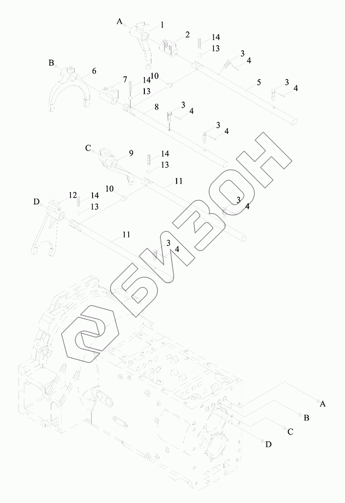 8 TC05373060010 Вал вилки переключения передач III-IV