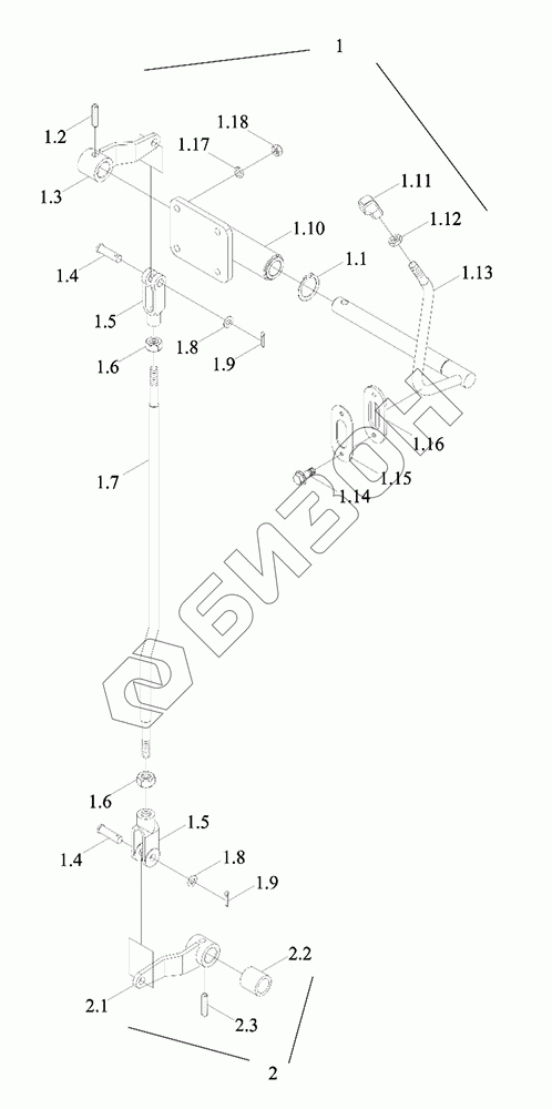 Графический каталог запасных частей к технике: LOVOL TM5D2A1304-002K. Механизм управления раздаточной коробкой