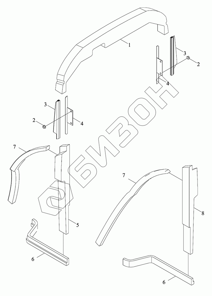 Графический каталог запасных частей к технике: LOVOL TM5D2A1304-002K. Монтажный блок уплотнителя капота