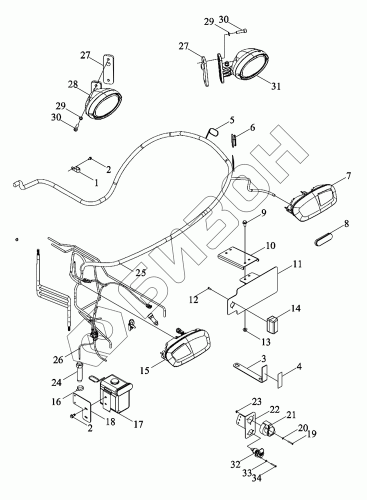 | 25 | TC05484150006K | Жгут переходной проводов освещения номерного знака |