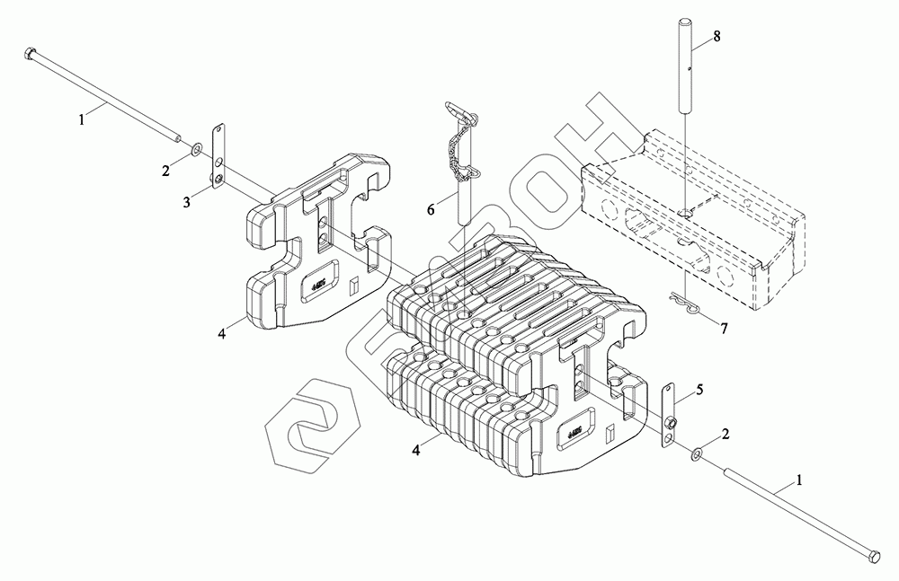 Графический каталог запасных частей к технике: LOVOL TM5D2A1304-002K. Противовес передний