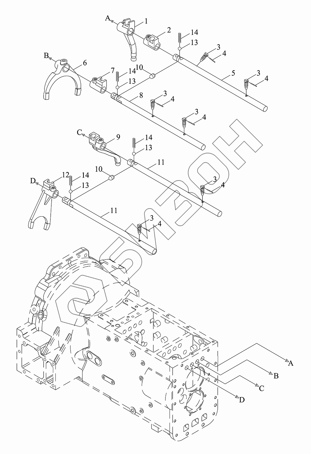 | 8 | TC05373060011 | Вал вилки переключения передач III-IV |