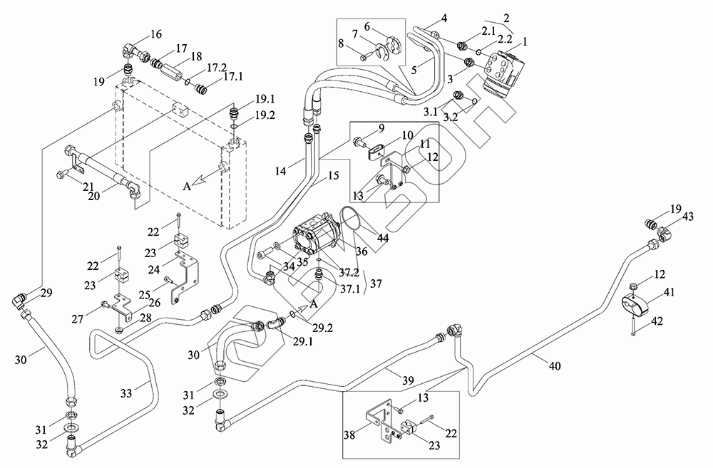 | 5 | TM5D402030015K | Узел шланга P-образного отверстия рулевого механизма |