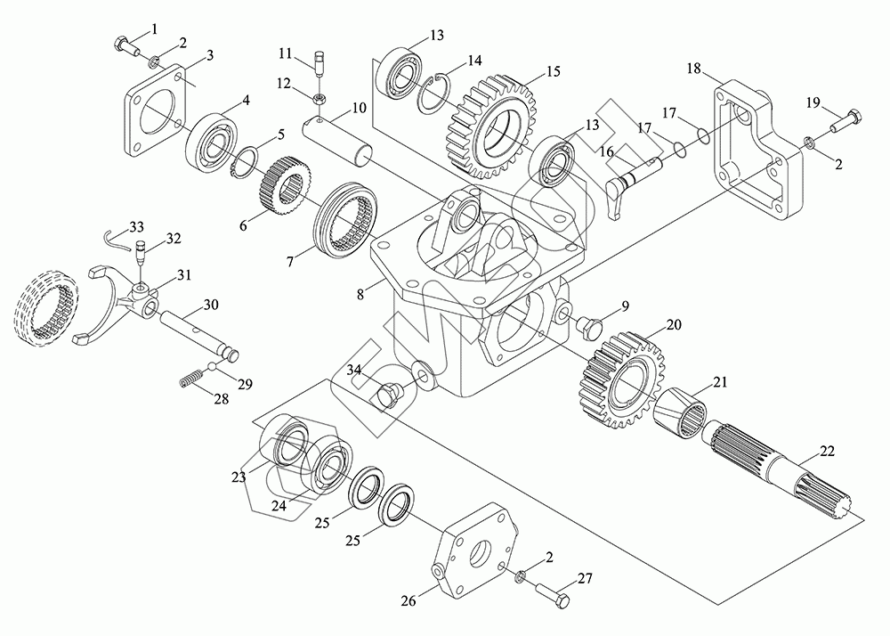 Графический каталог запасных частей к технике: LOVOL TM5D2A1304-002K. Корпус раздаточной коробки 2