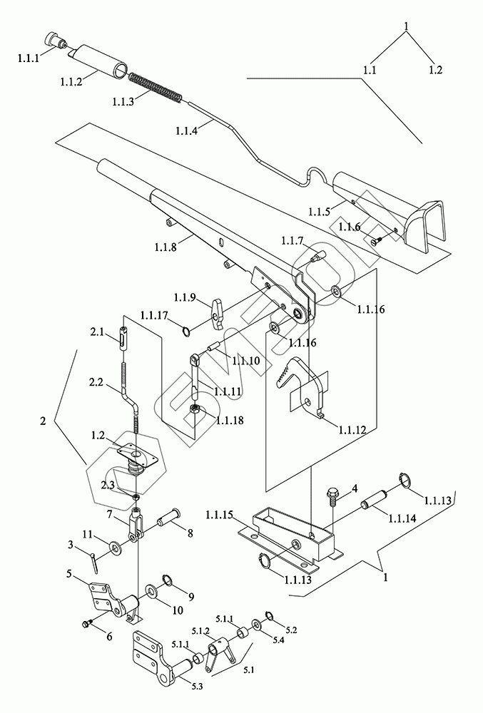 1 TD2S212090001 Узел рукоятки вторичного сцепления и уплотнительной втулки