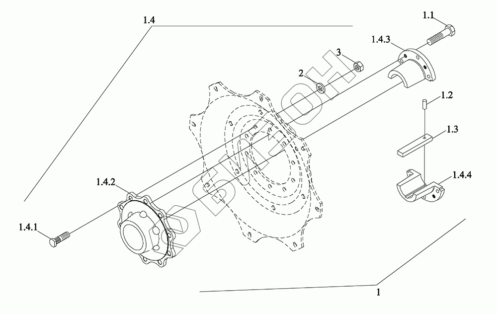 | 1.4.1 | TC05340110011 | Болт крепления ведущего колеса M22X1.5X62 |