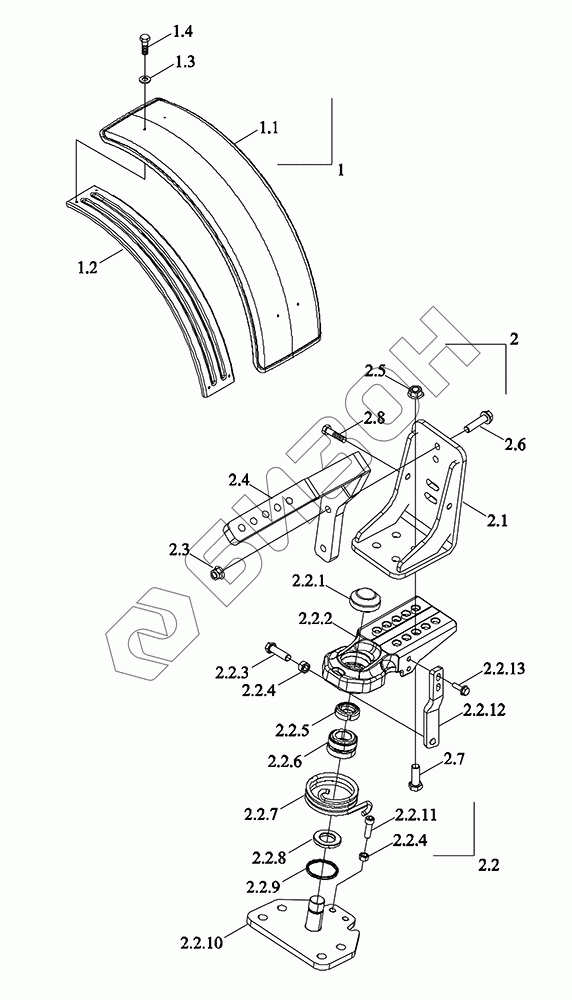 Графический каталог запасных частей к технике: LOVOL TM5D2A1304-002K. Брызговик левый передний