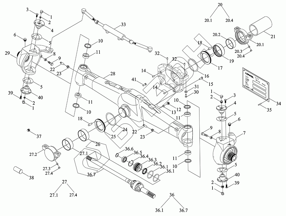 Графический каталог запасных частей к технике: LOVOL TM5D2A1304-003K. Картер, цапфа, вал приводной