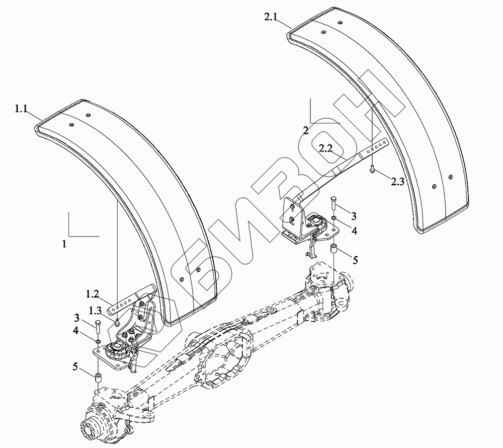 Графический каталог запасных частей к технике: LOVOL TM5D2A1304-003K. Крылья передние в сборе