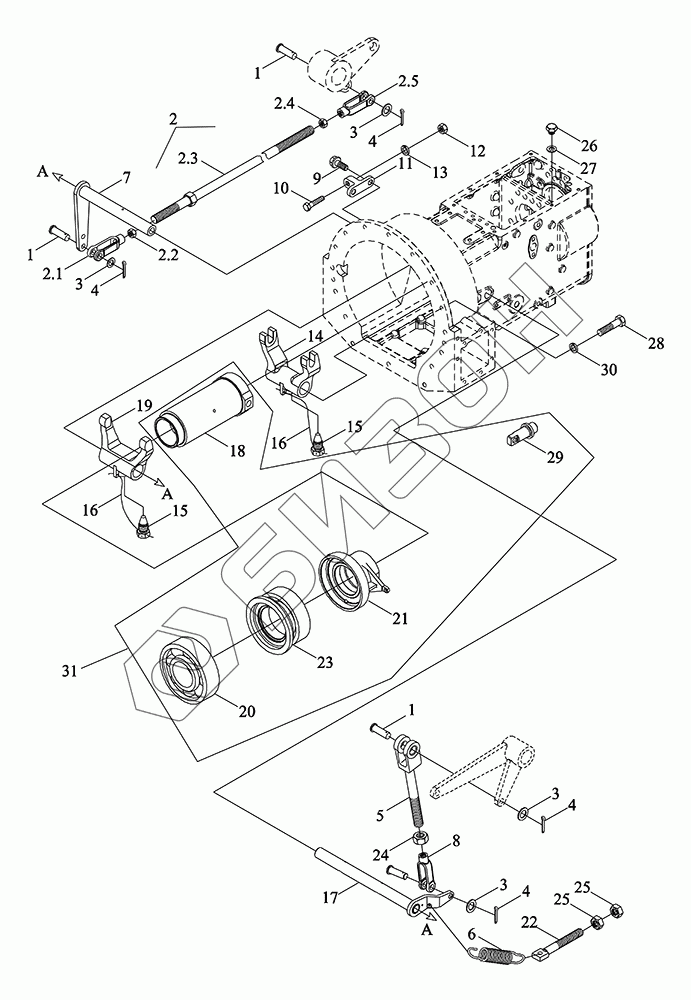 Графический каталог запасных частей к технике: LOVOL TM5D2A1304-003K. Механизм управления сцеплением 2