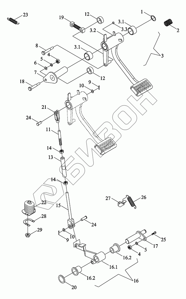 Графический каталог запасных частей к технике: LOVOL TM5D2A1304-003K. Механизм управления сцеплением 3
