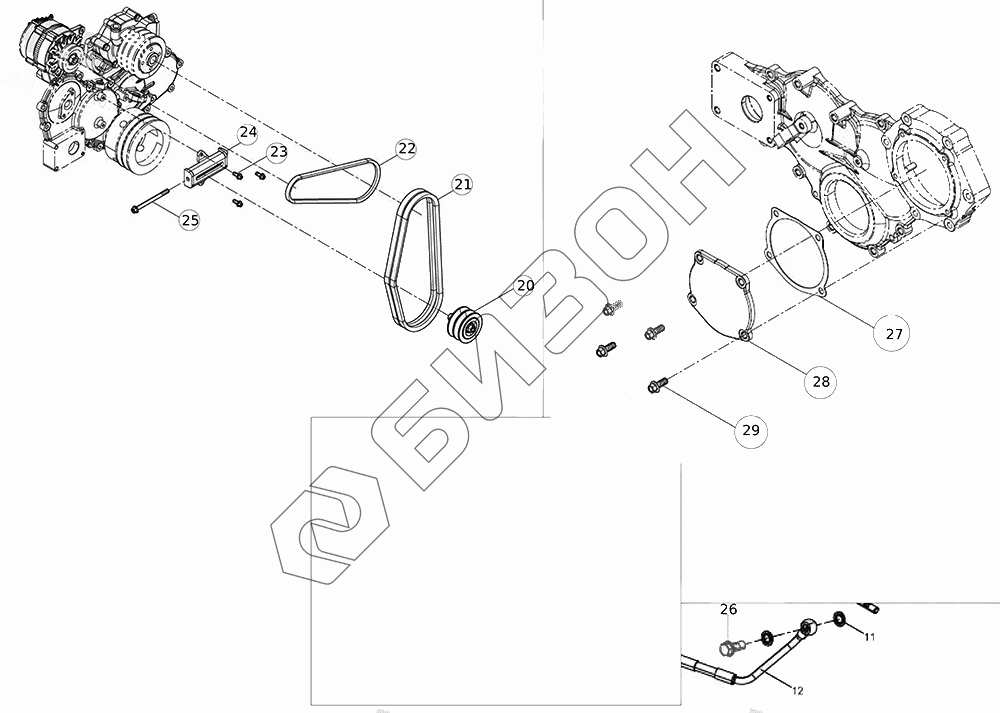 Графический каталог запасных частей к технике: LOVOL TM5D2A1304-003K. Натяжитель, ремни