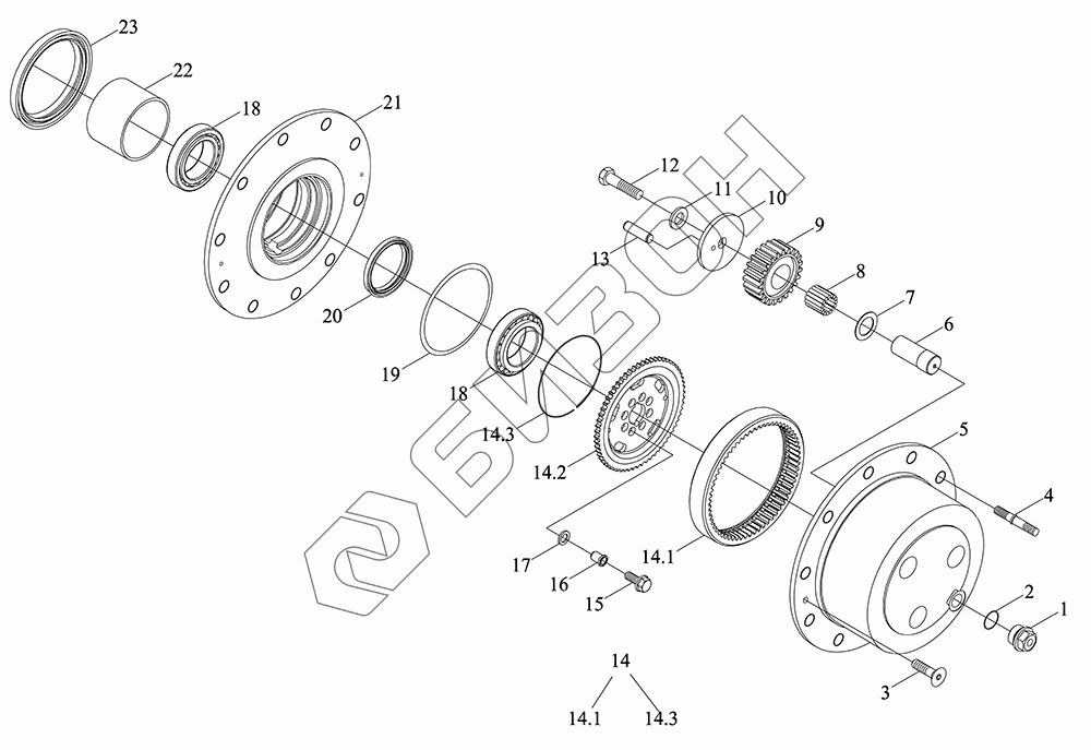 Графический каталог запасных частей к технике: LOVOL TM5D2A1304-003K. Редуктор колёсный