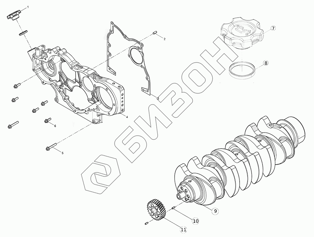 Графический каталог запасных частей к технике: LOVOL TM5D2A1304-003K. Вал коленчатый