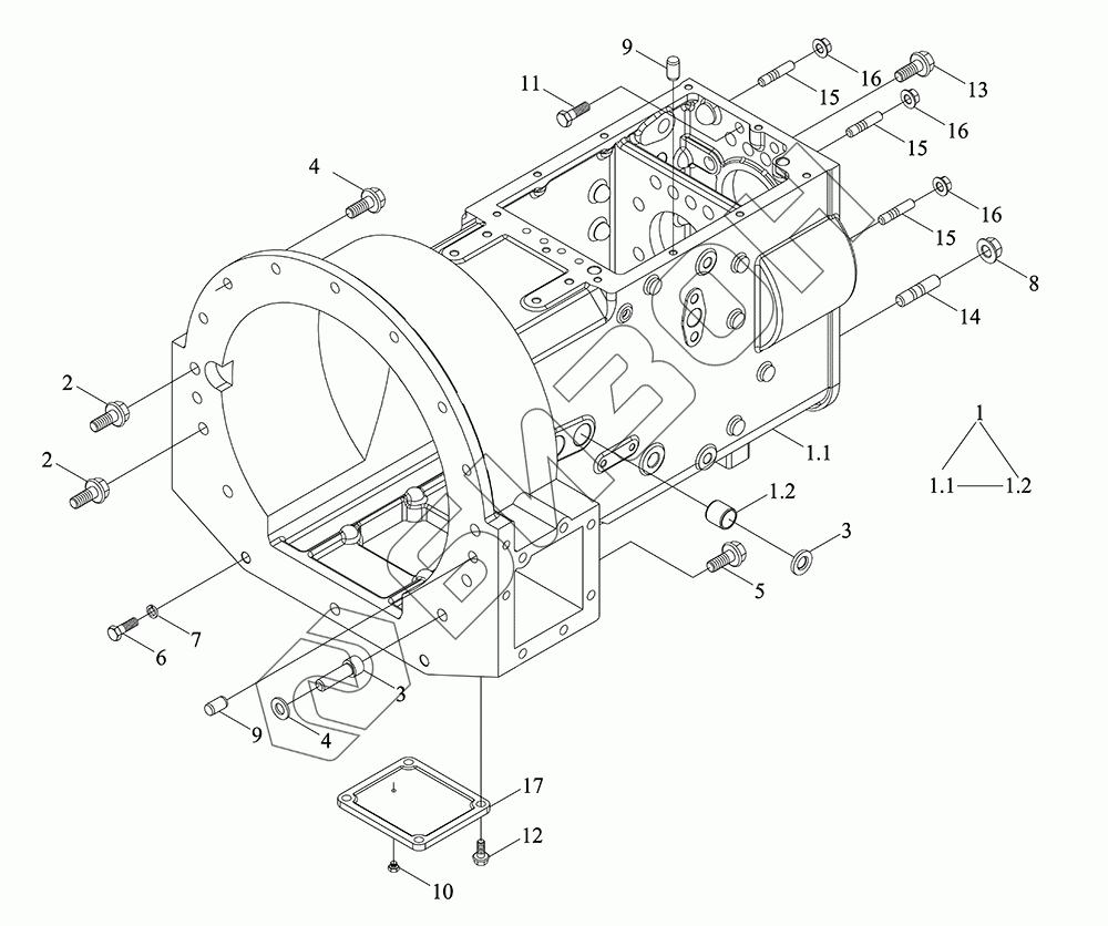 Графический каталог запасных частей к технике: LOVOL TM5D2A1304-006K. Корпус коробки скоростей