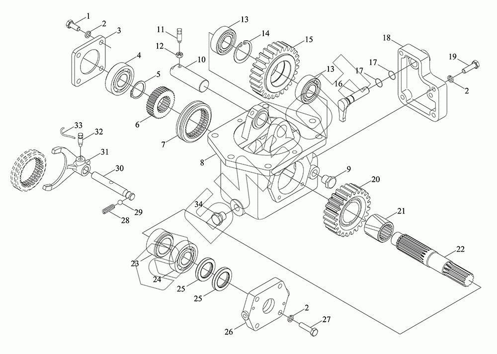 Графический каталог запасных частей к технике: LOVOL TM5D2A1304-006K. Корпус раздаточной коробки 2