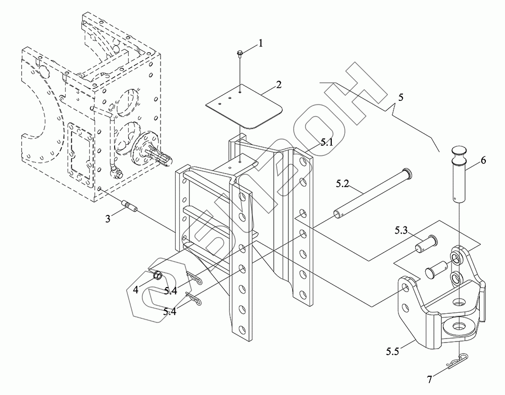 Графический каталог запасных частей к технике: LOVOL TM5D2A1304-006K. Монтажный блок тягово-сцепного устройства