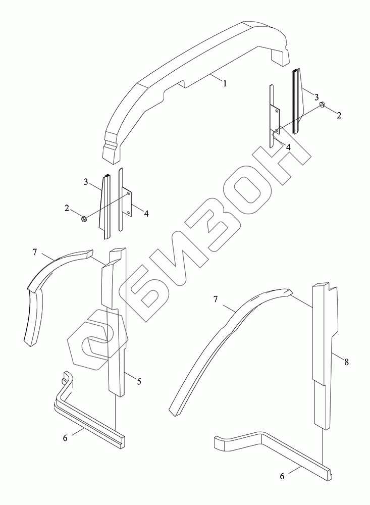 Графический каталог запасных частей к технике: LOVOL TM5D2A1304-006K. Монтажный блок уплотнителя капота