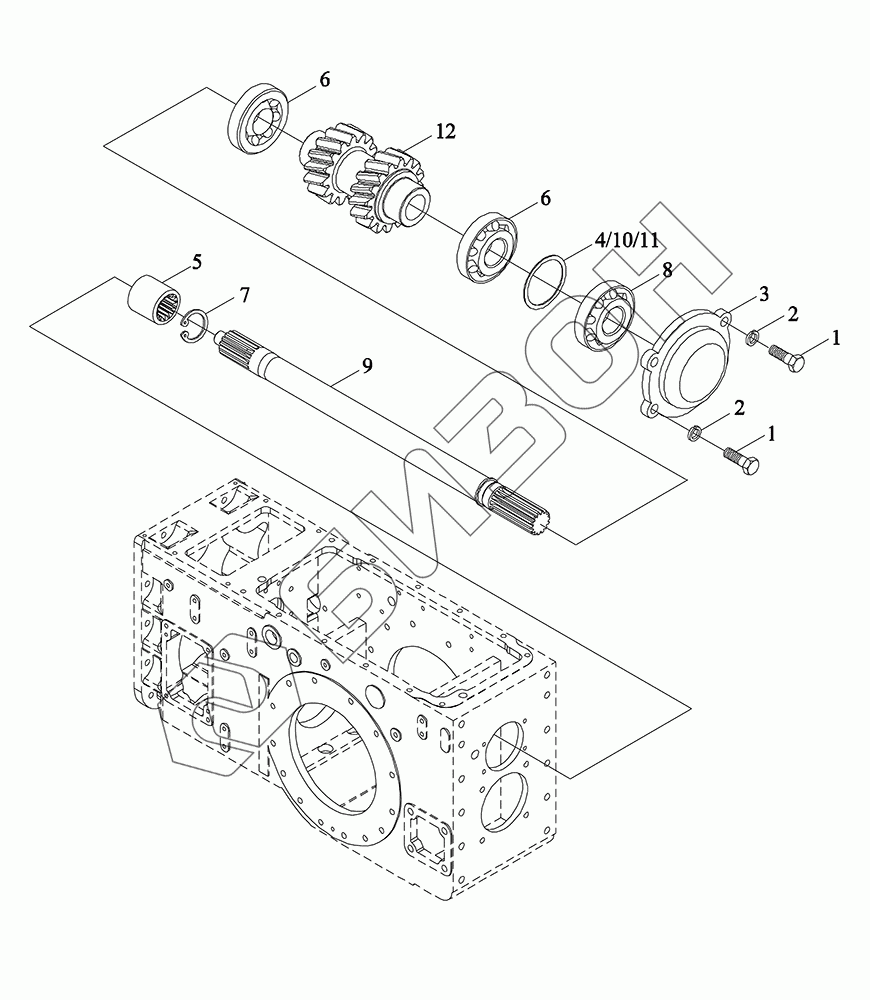12 TD2S412030001 Вал отбора мощности с двойной шестерней