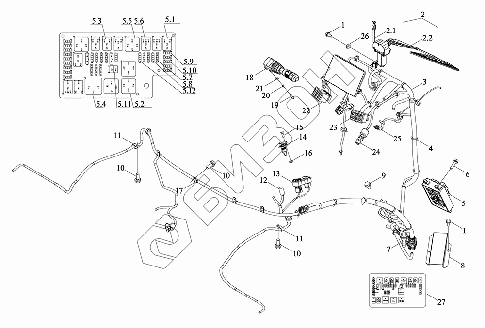 Графический каталог запасных частей к технике: LOVOL TM5D2A1304-006K. Монтажный блок жгута проводов кузова