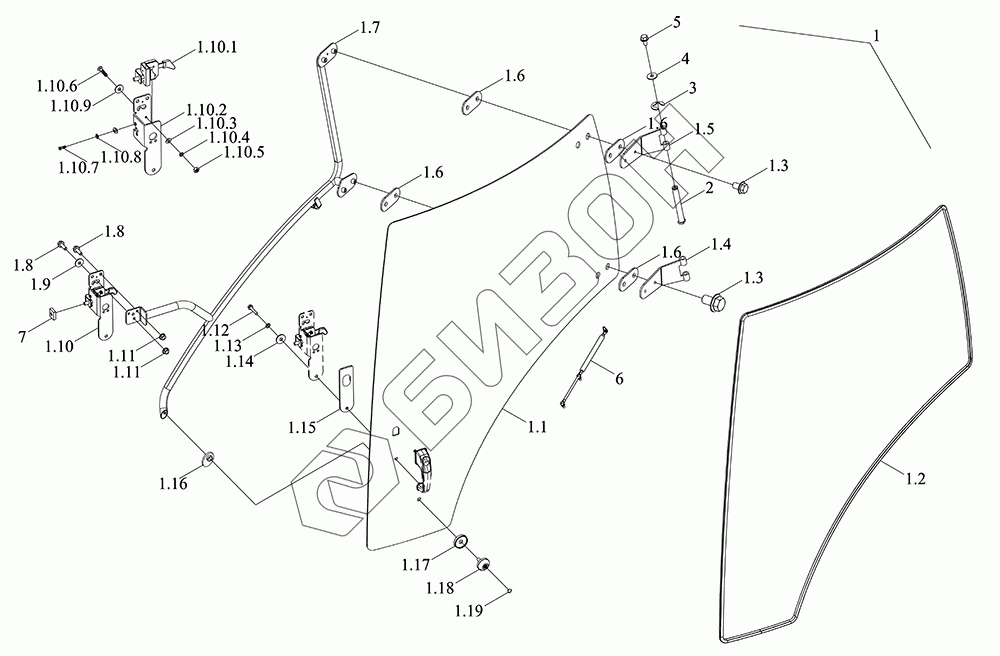 | 1.10.2 | TS06451013116 | Кронштейн крепления замка левой двери |