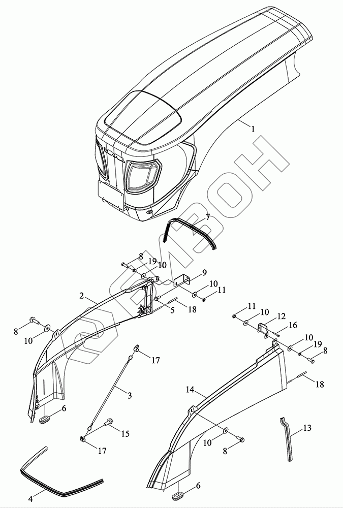 Графический каталог запасных частей к технике: LOVOL TM5D2A1304-006K. Монтажный блок капота