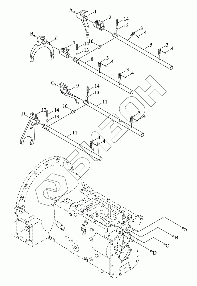 Графический каталог запасных частей к технике: LOVOL TM5D2A1304-006K. Механизм управления