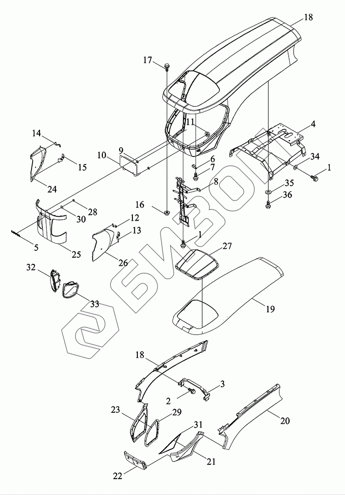 Графический каталог запасных частей к технике: LOVOL TM5D2A1304-006K. Монтажный блок капота 2