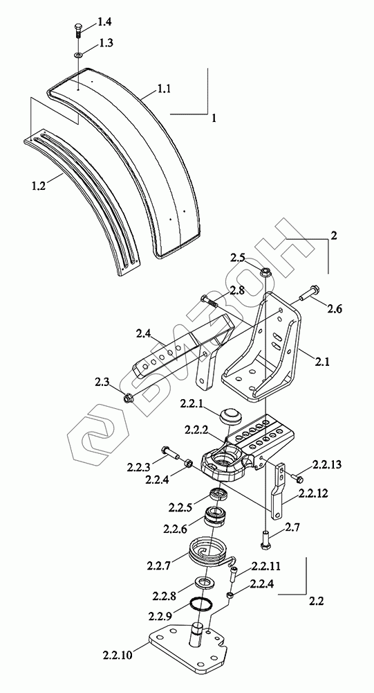 Графический каталог запасных частей к технике: LOVOL TM5D2A1304-018K. Крыло левое переднее в сборе