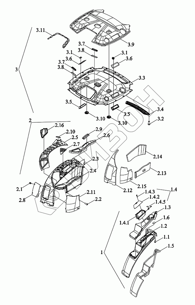 Графический каталог запасных частей к технике: LOVOL TM5D2A1304-018K. Внутренний молдинг в сборе 2