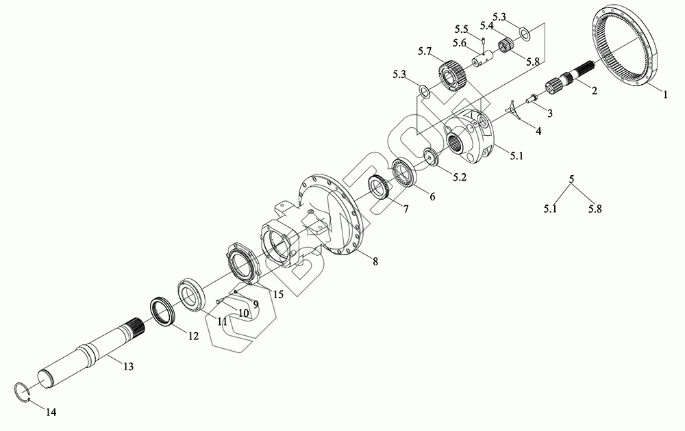 Графический каталог запасных частей к технике: LOVOL TM5D2A1304-018K. Левая конечная передача в сборе