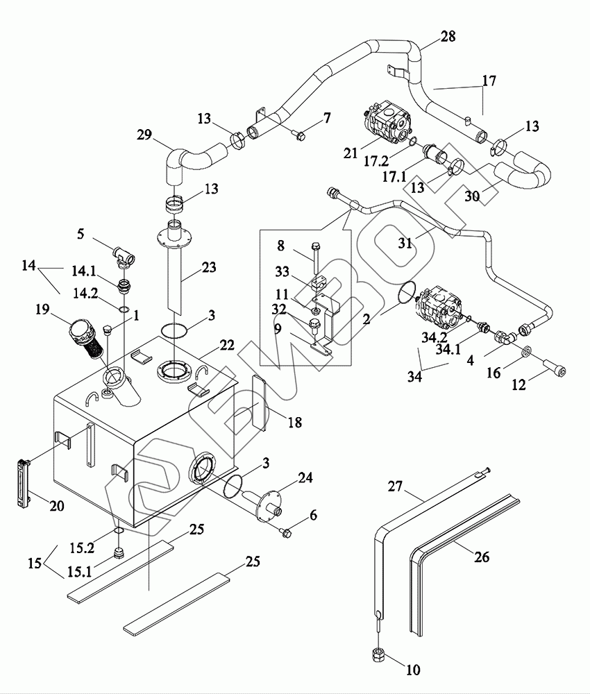 | 22 | TM5D581060001K | Бак дополнительный гидравлического масла |
