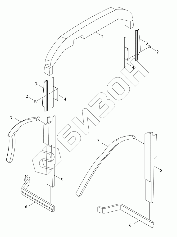 Графический каталог запасных частей к технике: LOVOL TM5D2A1504-003K. Монтажный блок уплотнителя капота