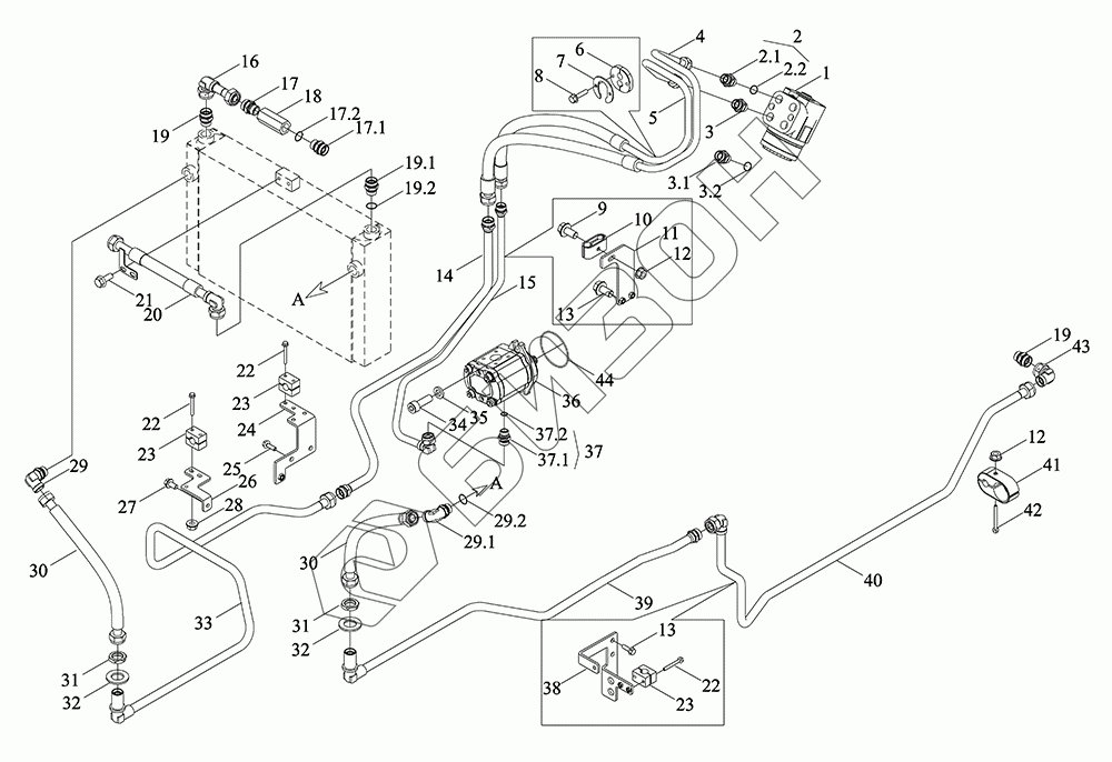 | 5 | TM5D402030015K | Узел шланга P-образного отверстия рулевого механизма |