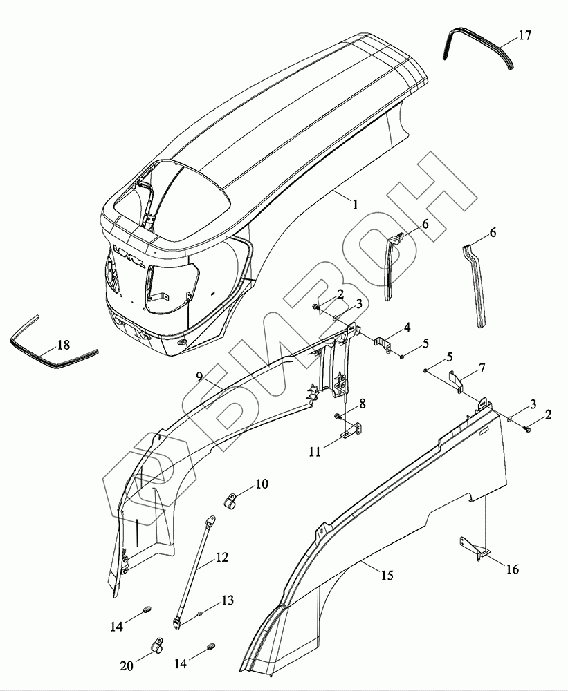 | 16 | TM6R471040001K | Кронштейн боковой панели капота |