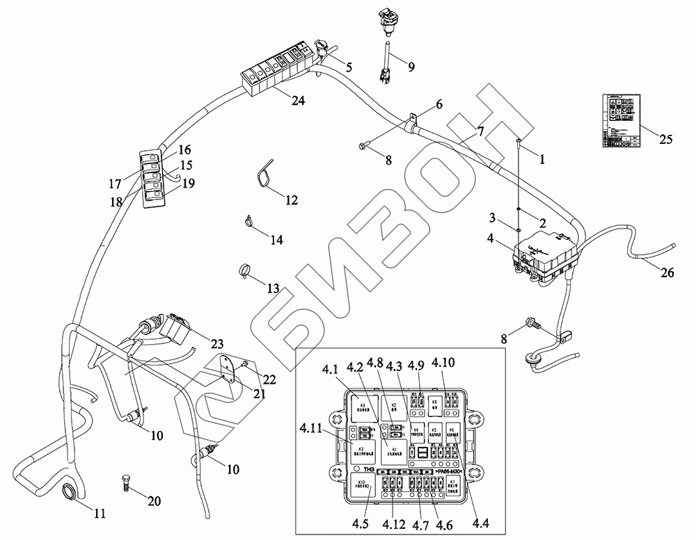 Графический каталог запасных частей к технике: LOVOL TM6R2A2004-008K. Жгут проводов кузова в сборе