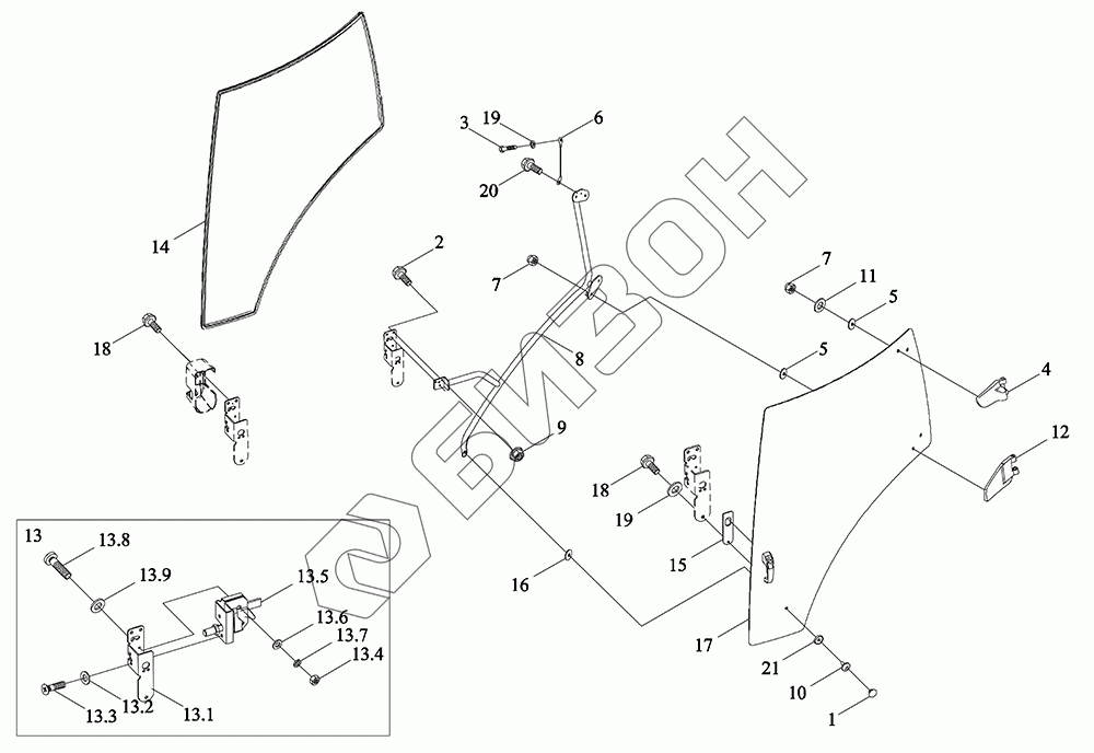 Графический каталог запасных частей к технике: LOVOL TM6R2A2004-008K. Дверь левая 2