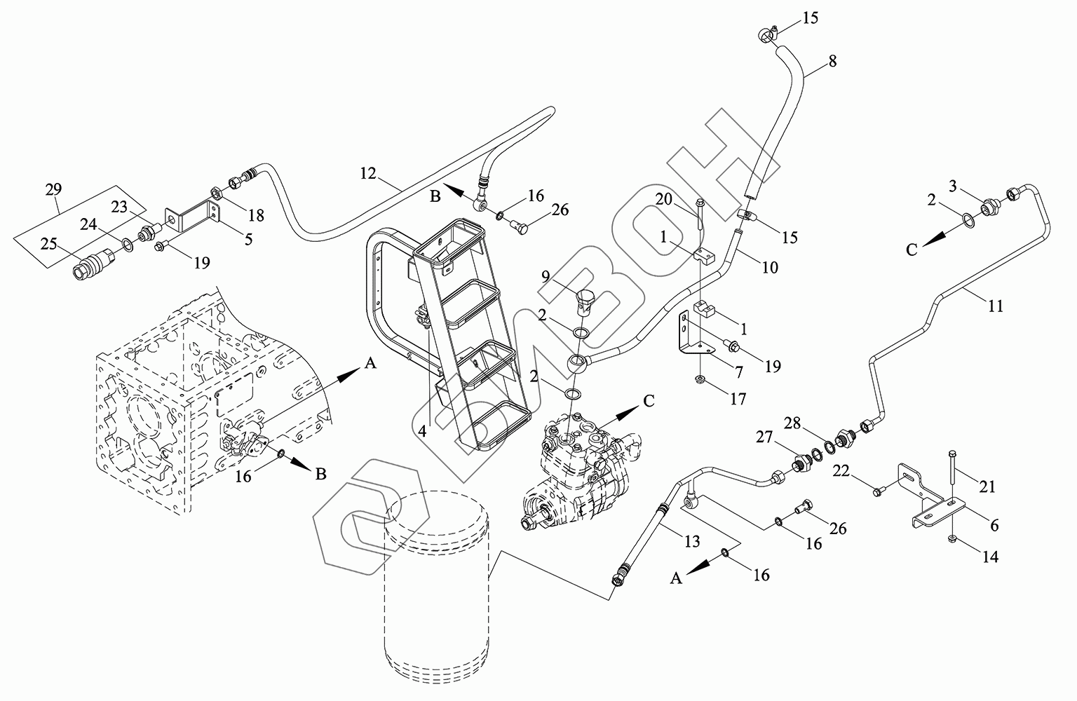 Графический каталог запасных частей к технике: LOVOL TM6R2A2004-008K. Газопровод в сборе
