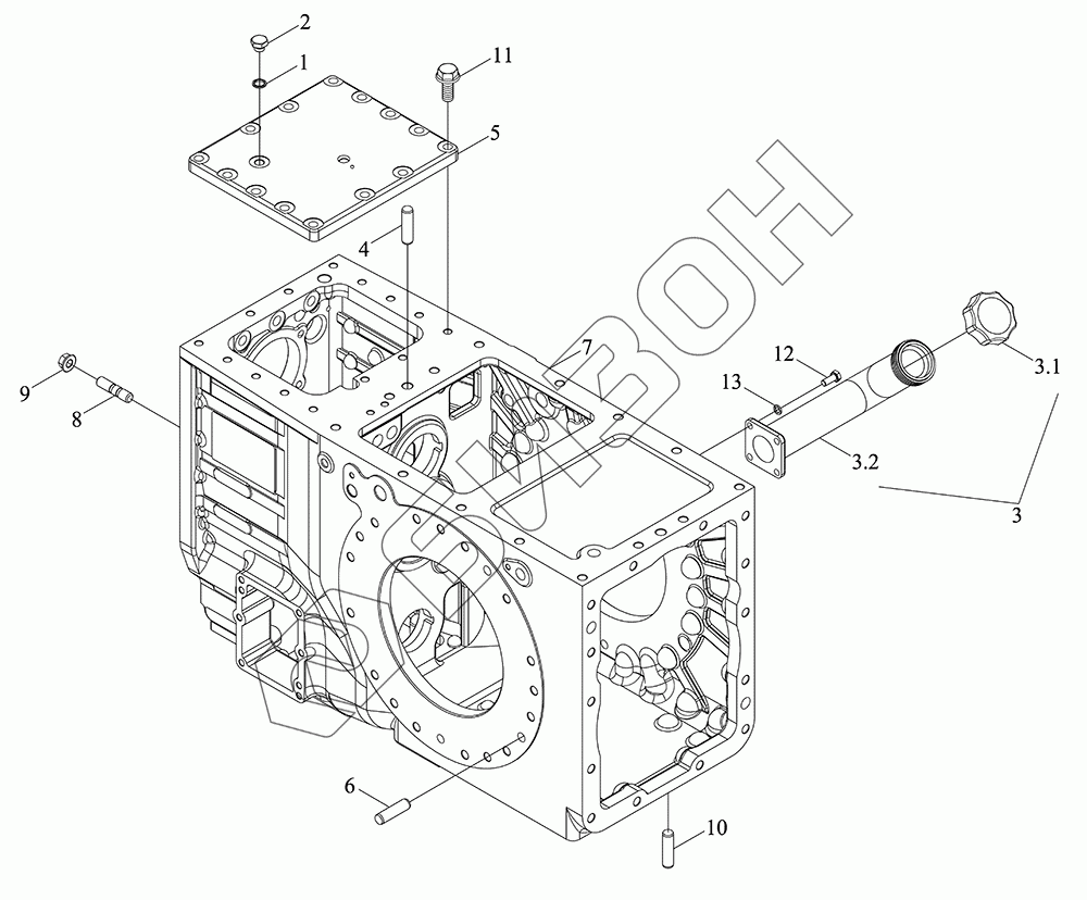 Графический каталог запасных частей к технике: LOVOL TM6R2A2004-008K. Картер заднего моста в сборе
