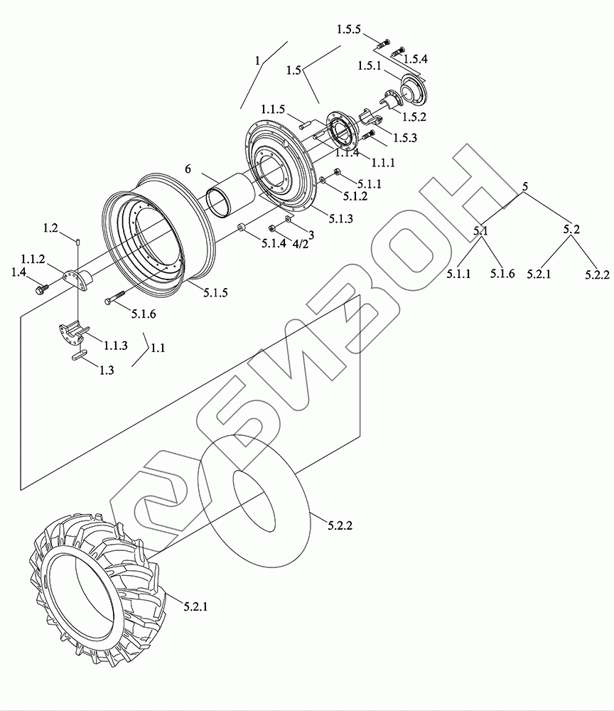 | 5 | TM6R340010001 | Колесо левое ведущее в сборе (20.8-38) |