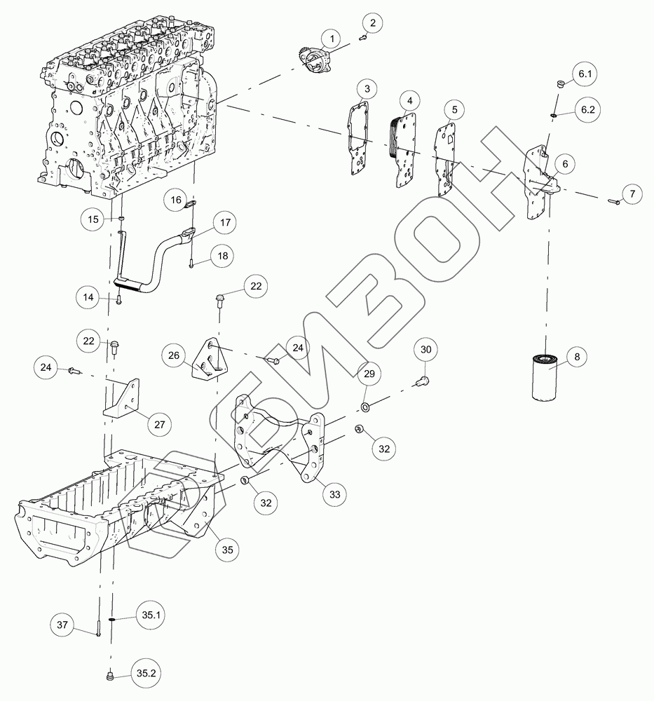 Графический каталог запасных частей к технике: LOVOL TM6R2A2204-004K. Поддон двигателя