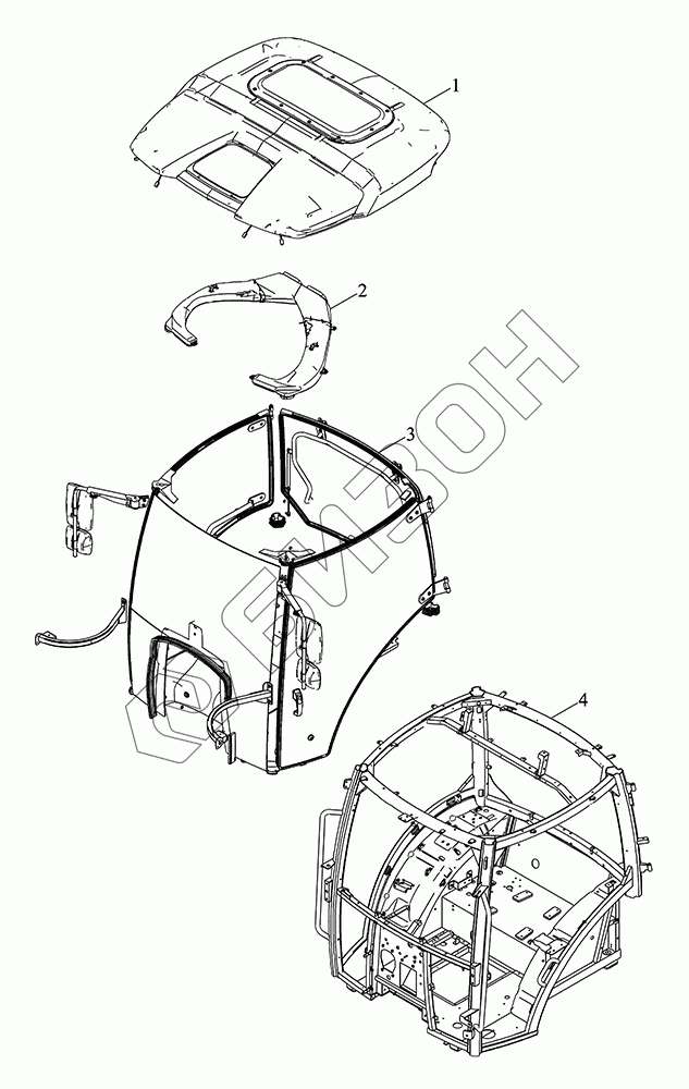 Графический каталог запасных частей к технике: LOVOL TM6R2A2204-004K. Кабина в сборе