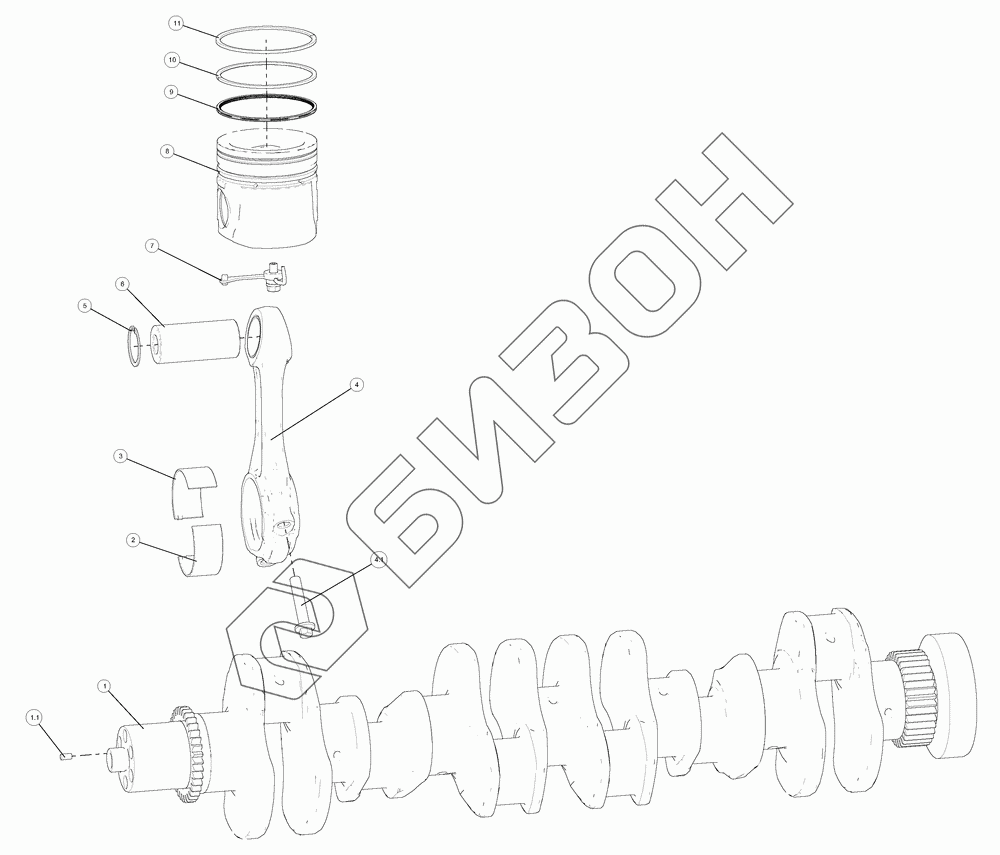 Графический каталог запасных частей к технике: LOVOL TM6R2A2204-004K. Коленчатый вал, поршень, шатун