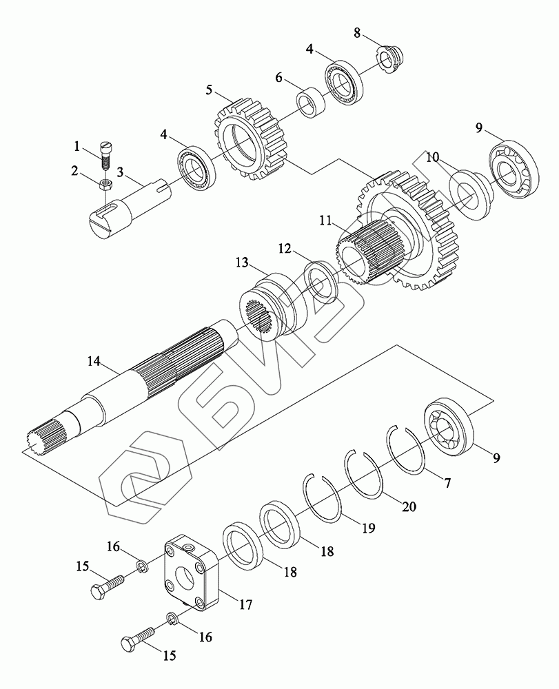 Графический каталог запасных частей к технике: LOVOL TM6R2A2204-004K. Раздаточная коробка
