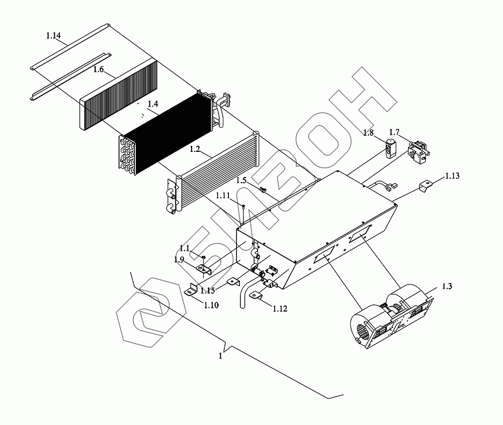Графический каталог запасных частей к технике: LOVOL TM6R2A2204-004K. Система кондиционирования воздуха кабины 1