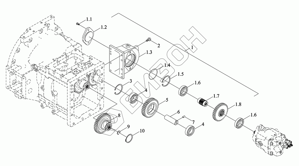 | 1.3 | TM6R424010009K | Корпус гидравлической раздаточной коробки |