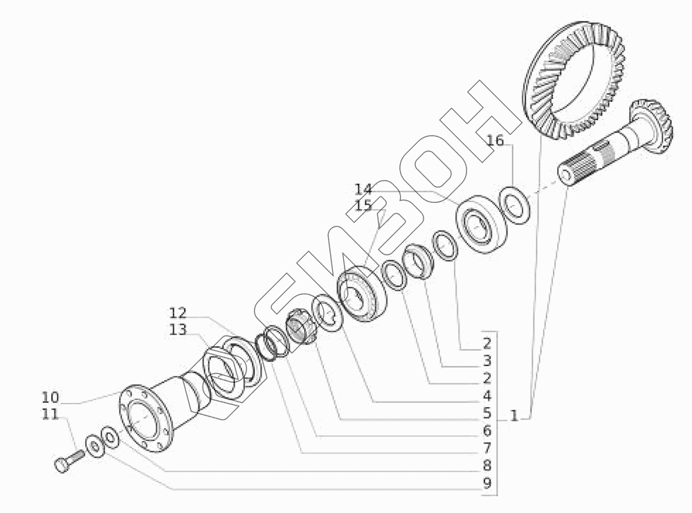 Графический каталог запасных частей к технике: LOVOL TM6R2A2204-006K. Коническая зубчатая передача