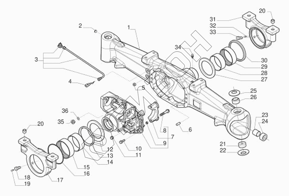 Графический каталог запасных частей к технике: LOVOL TM6R2A2204-006K. Корпус моста